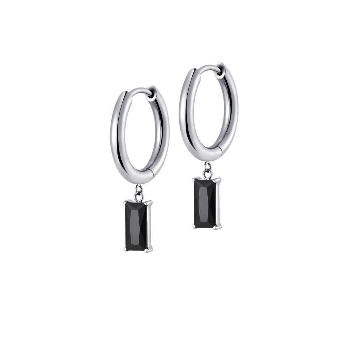 Onyx Baguette Charm Hoops in Titanium