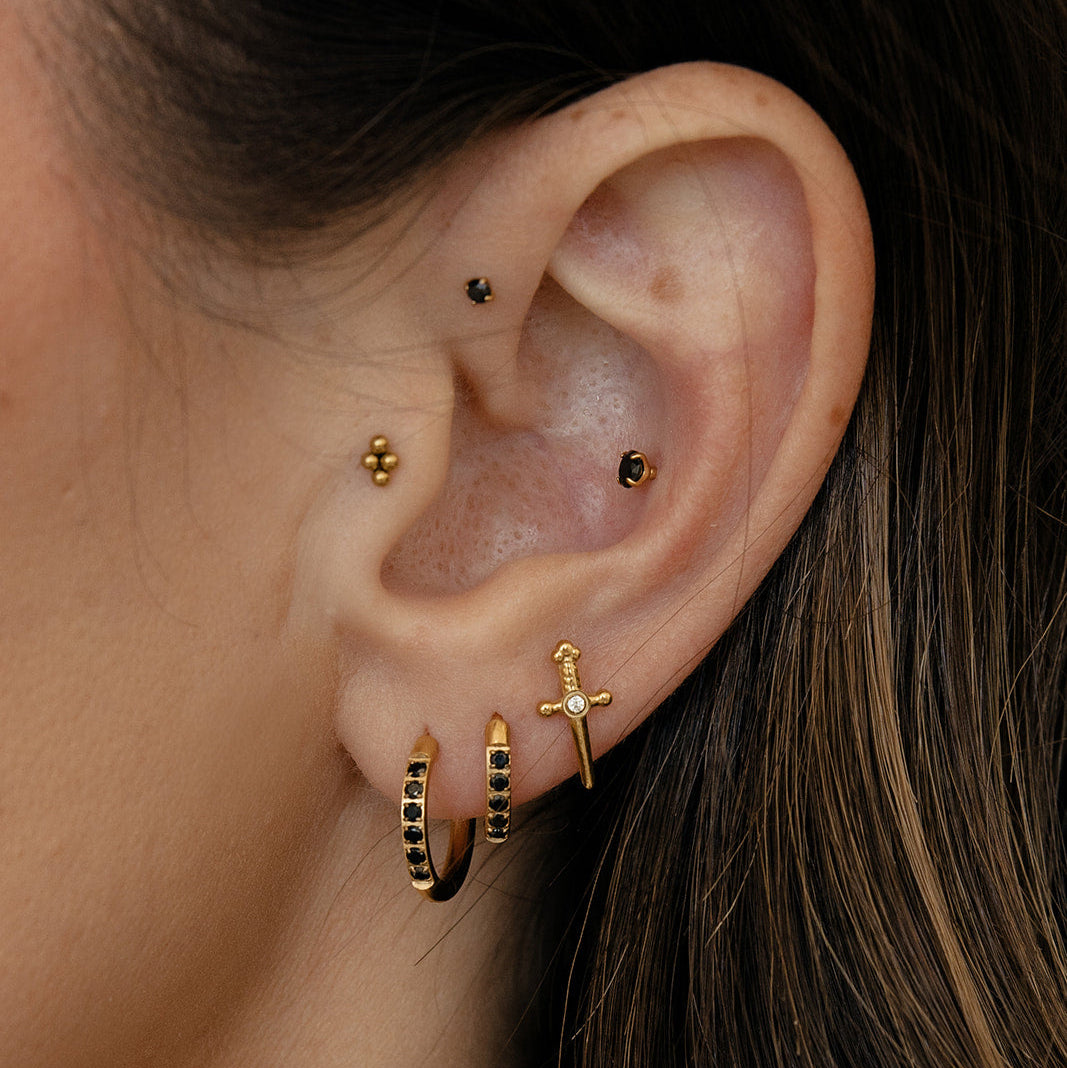 If you're used to only buying earrings in pairs, it could seem strange that these are sold as singles. Our studs are sold individually to allow mixing and matching in various piercings.
