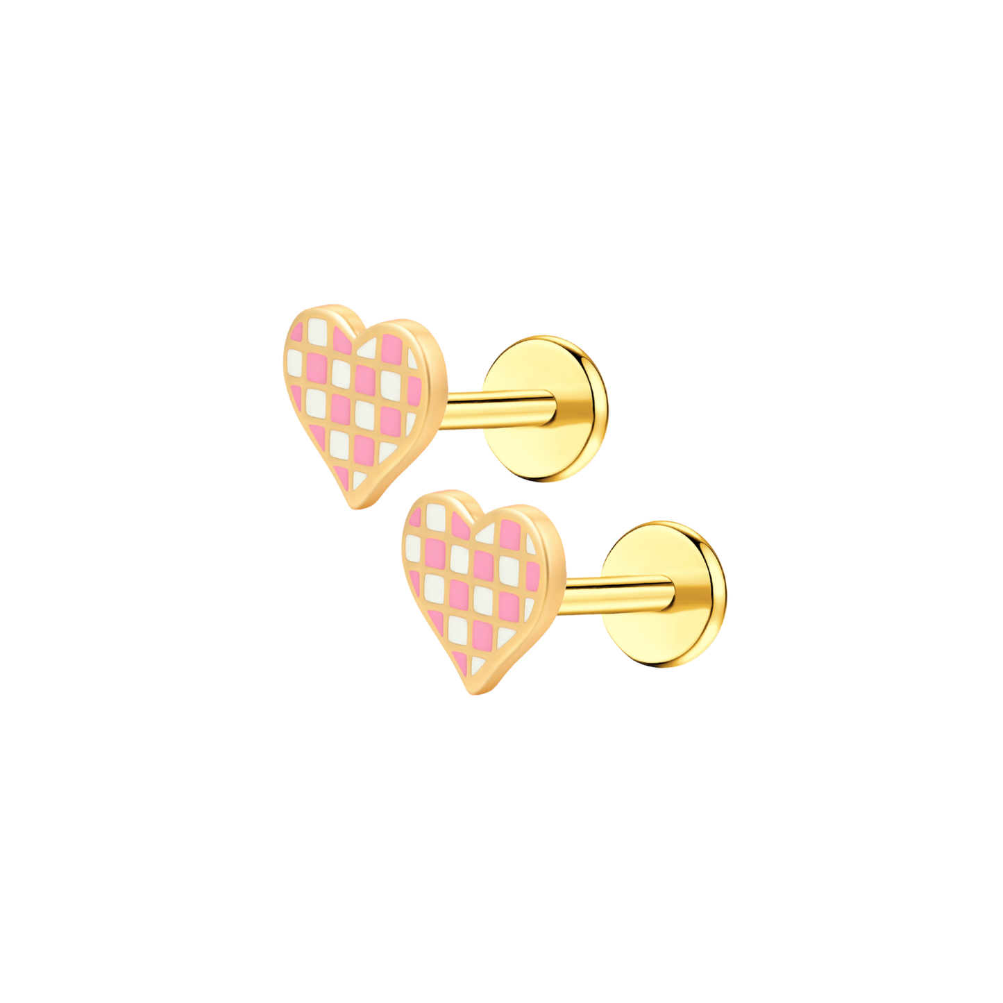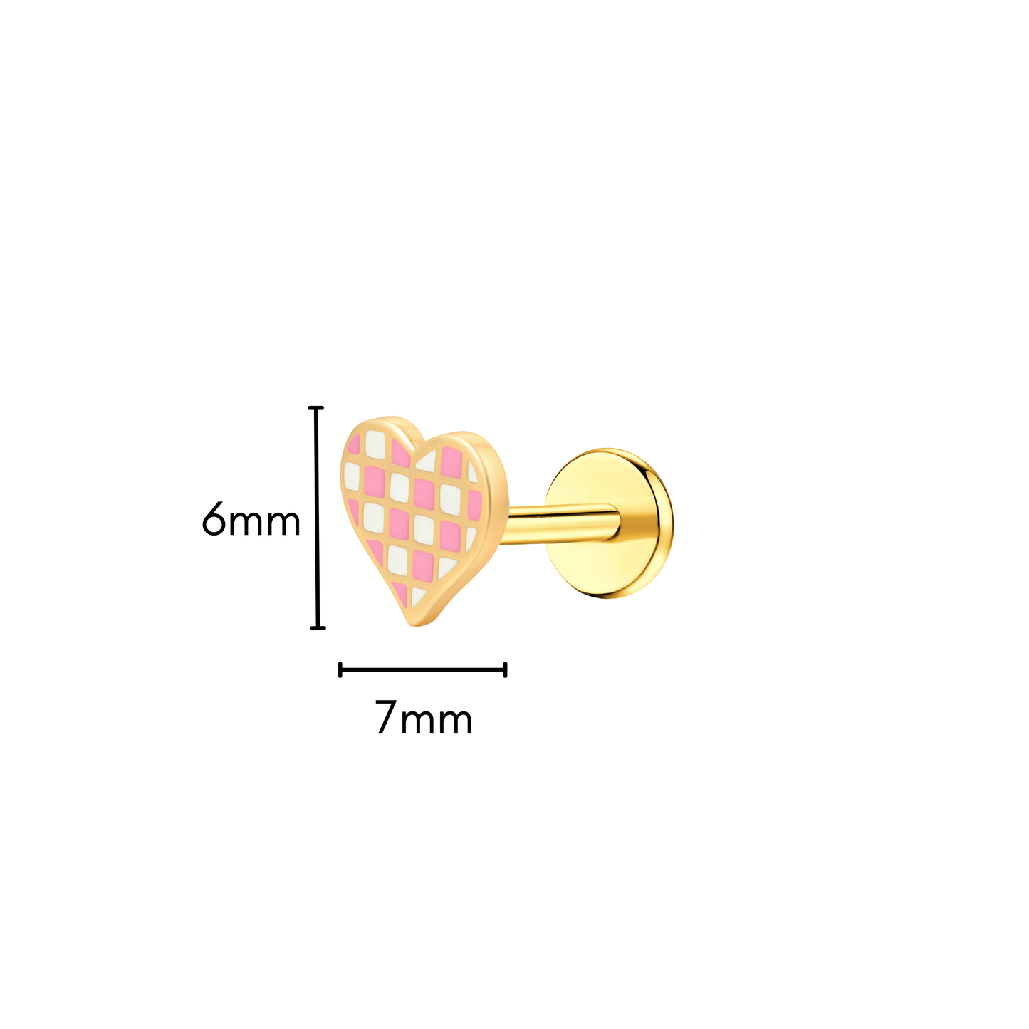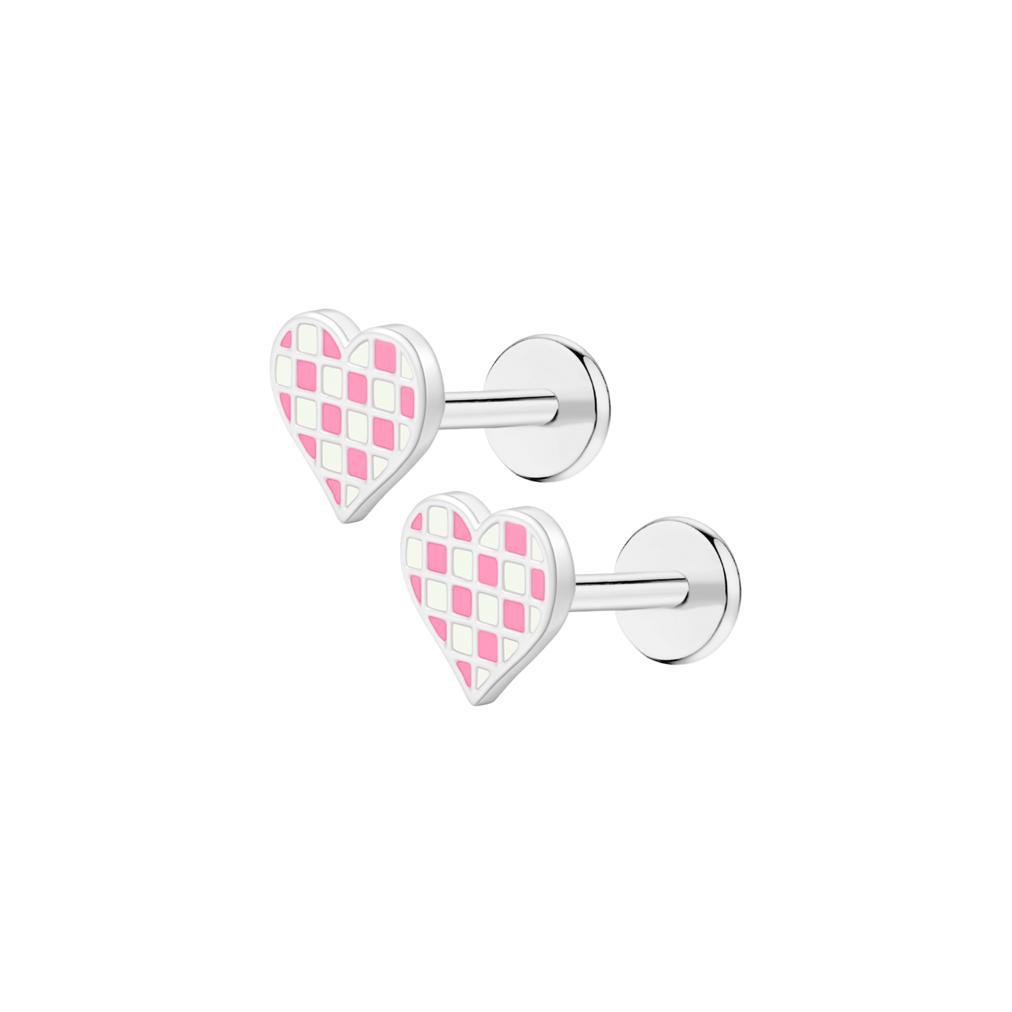 Pink Checkered Heart Enamel Flat Back Stud