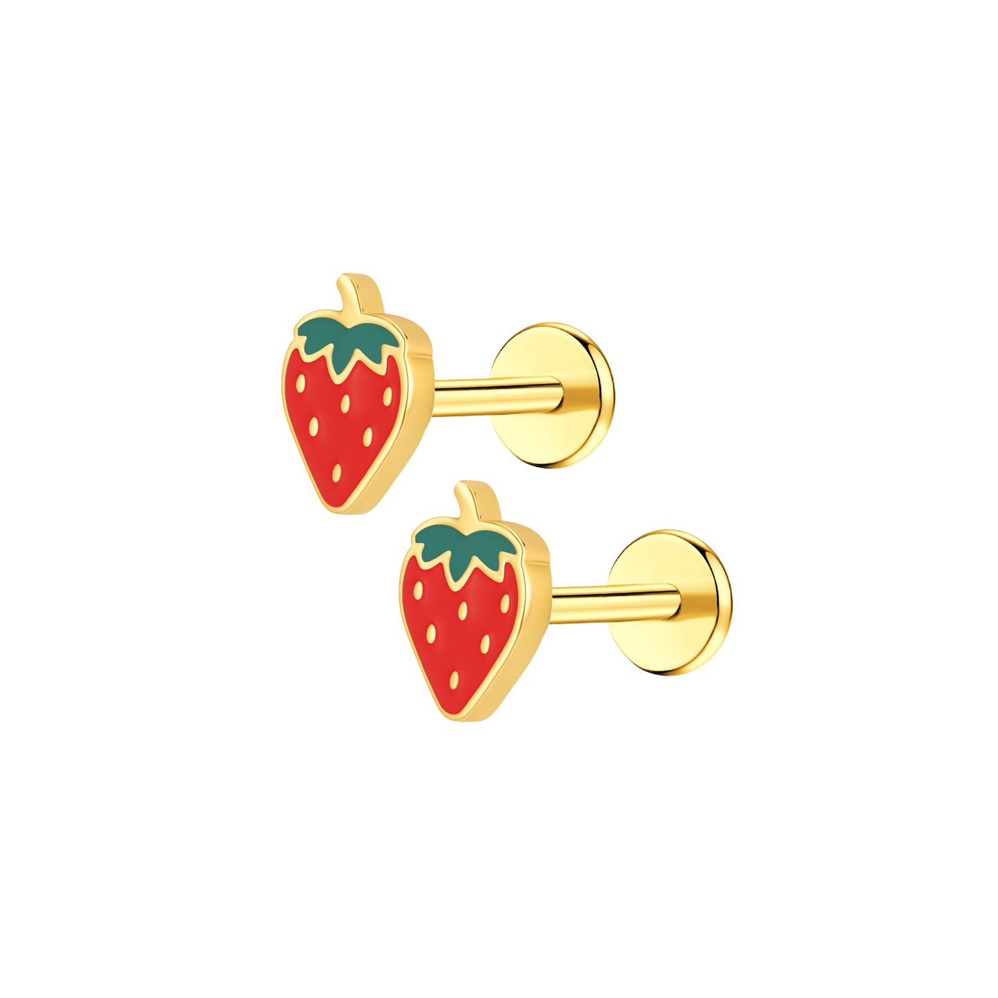 Red Strawberry Enamel Flat Back Stud