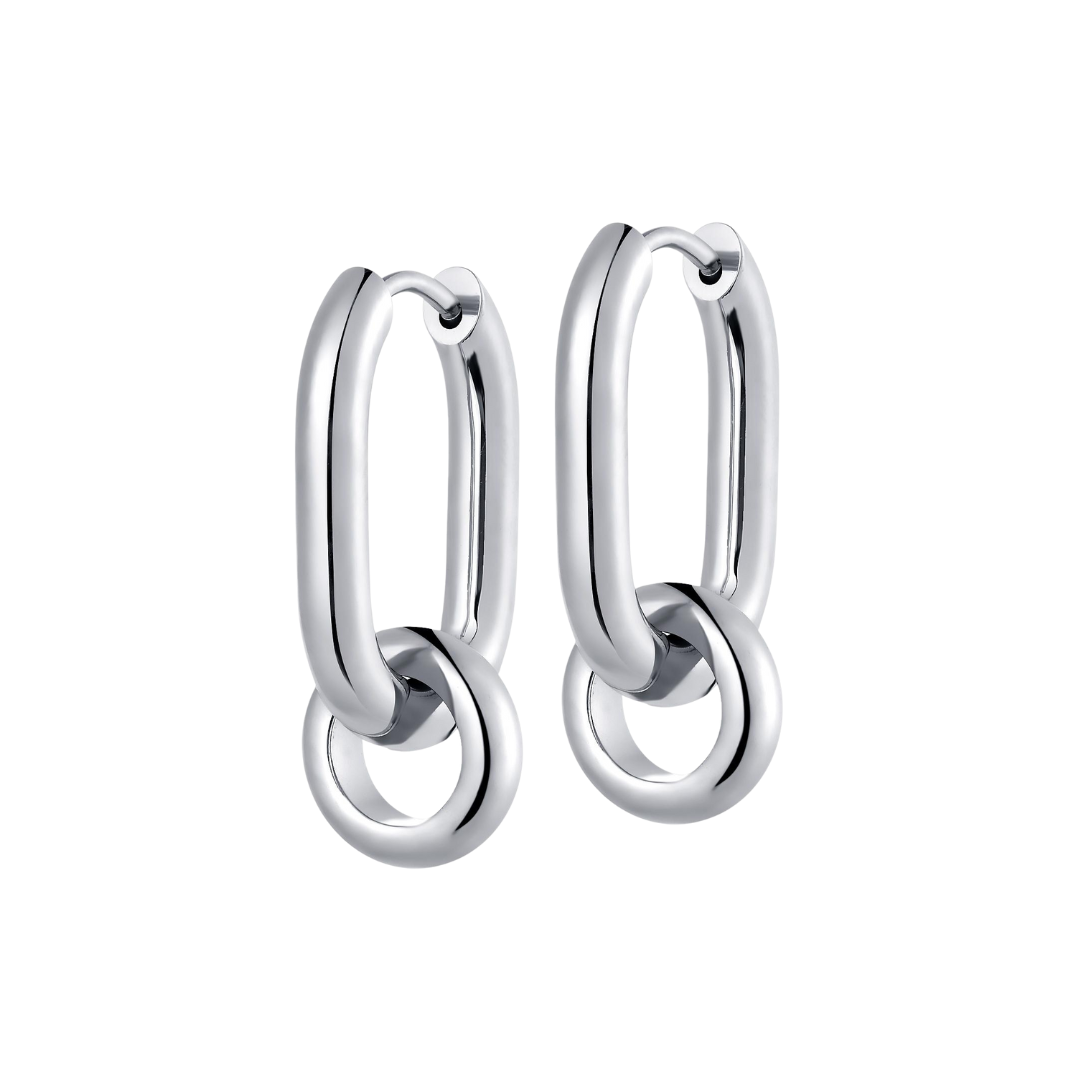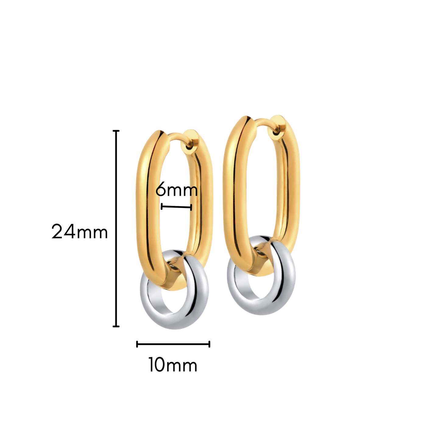 A modern take on a classic hoop. Our mixed mood dangle hoops add movement, shine, and just the right amount of edge. Available in gold with silver or full silver.