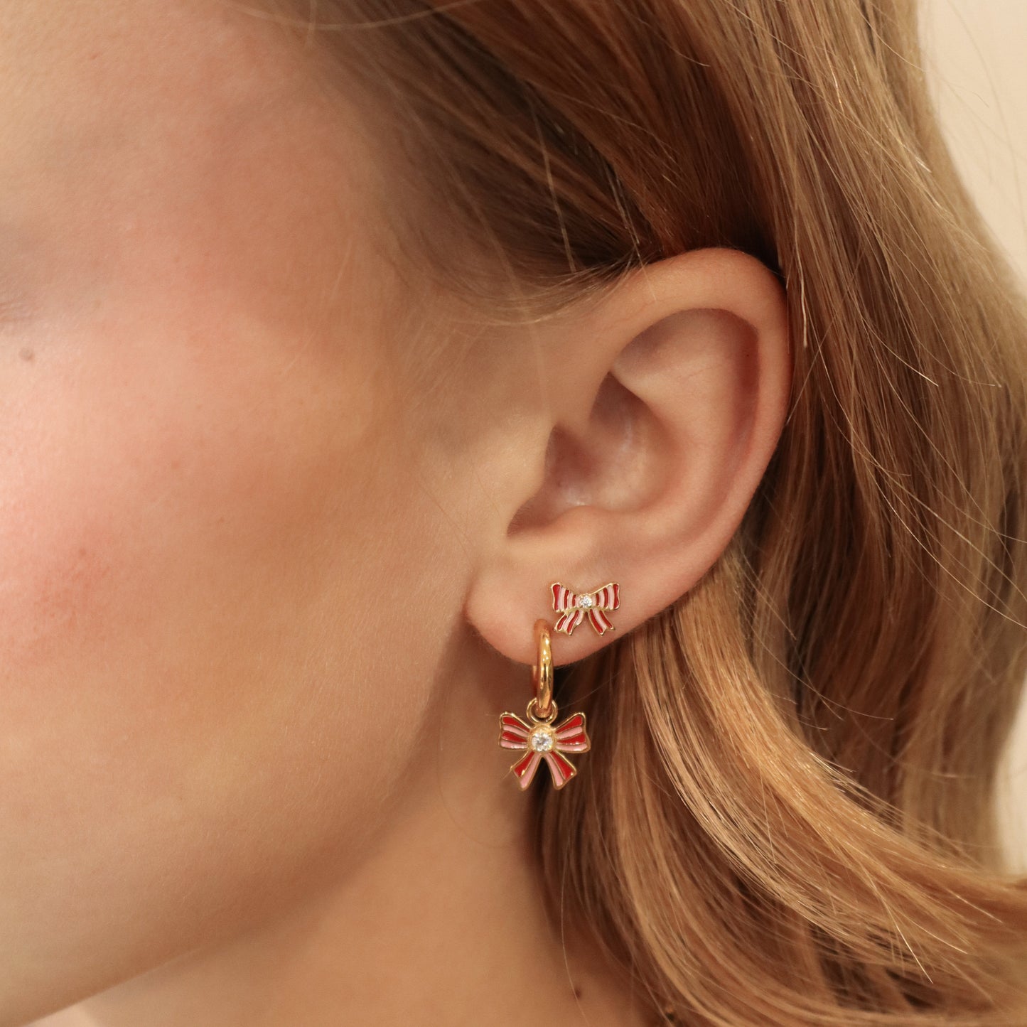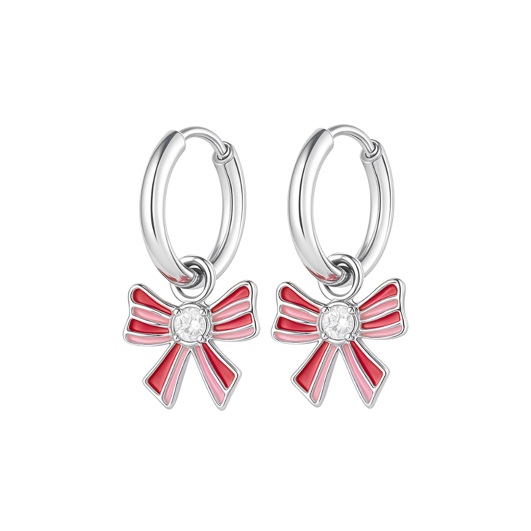 Add a little festive flair to your stack. These hoops feature a dainty red and white enamel bow with a sparkling CZ center. They add the perfect cheerful touch to any holiday look.