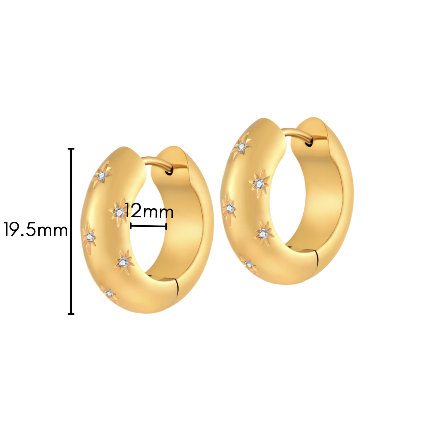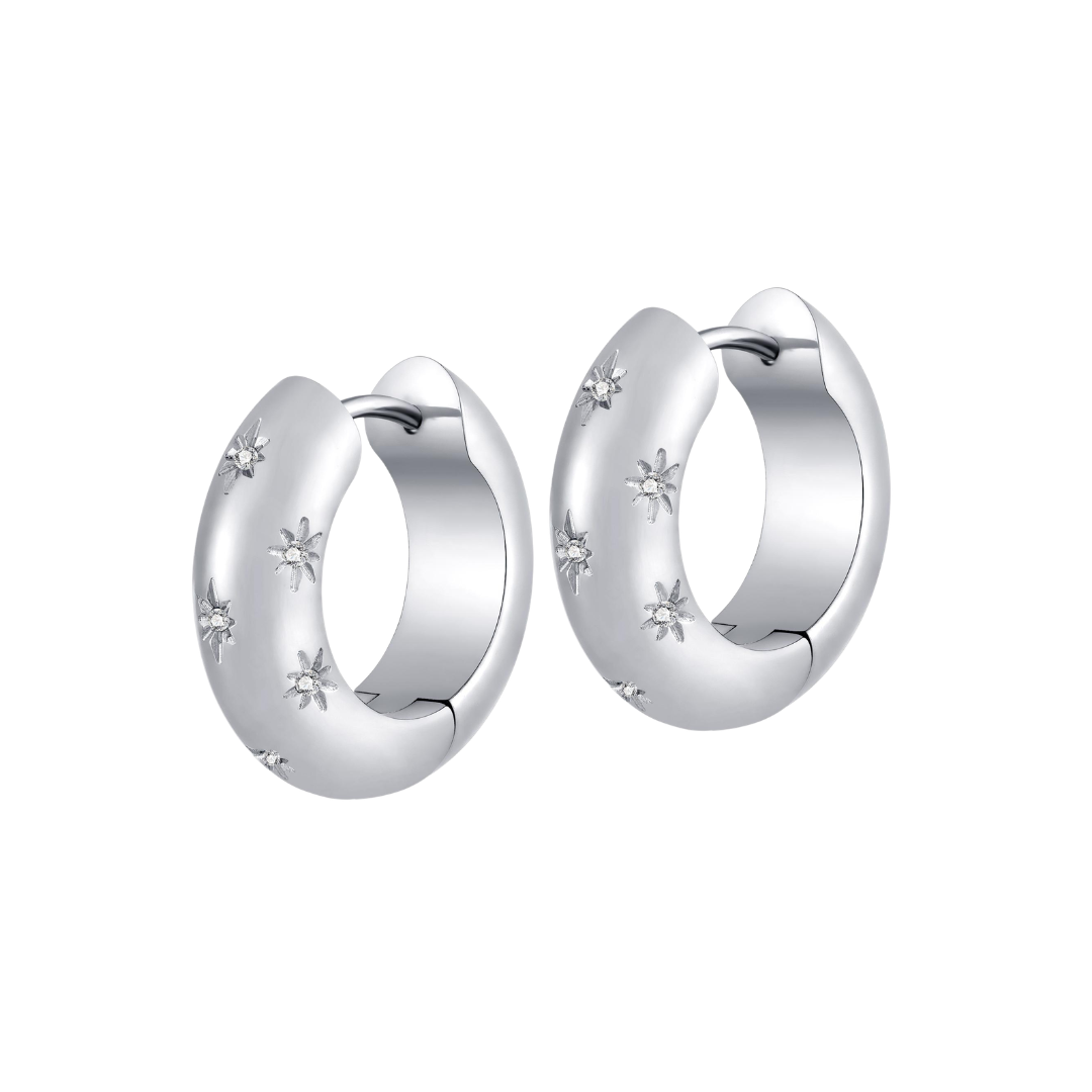 Make a statement with these chunky Starfall Hoops in Titanium! The CZ star gems are the perfect touch of sparkle to give these bold hoops a little extra fun and flair. Simple, yet bold, and totally your style.