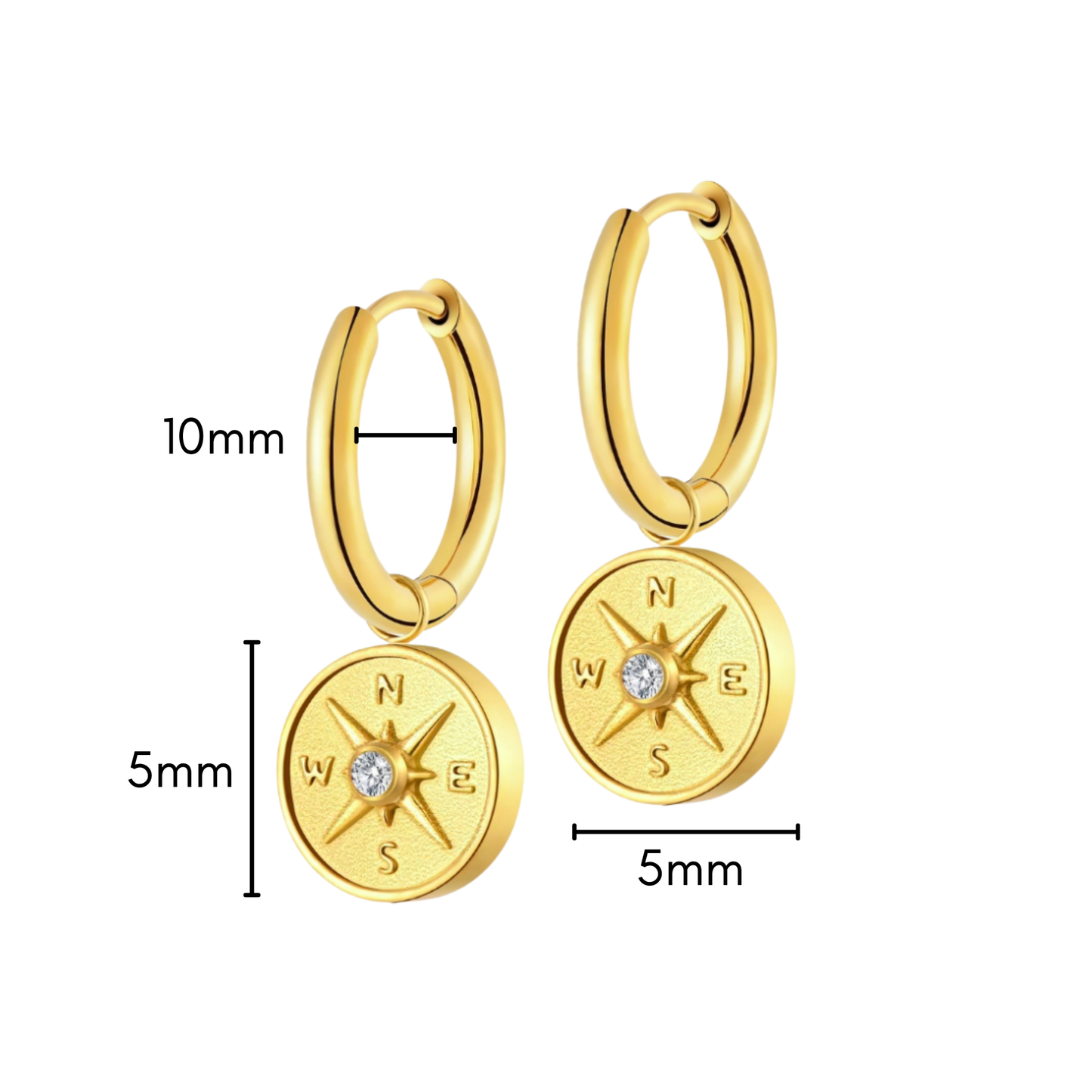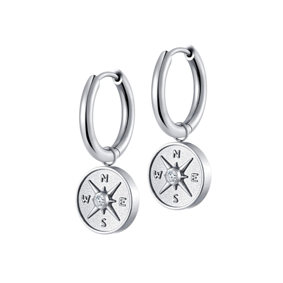 Antique Compass Charm Hoops in Titanium