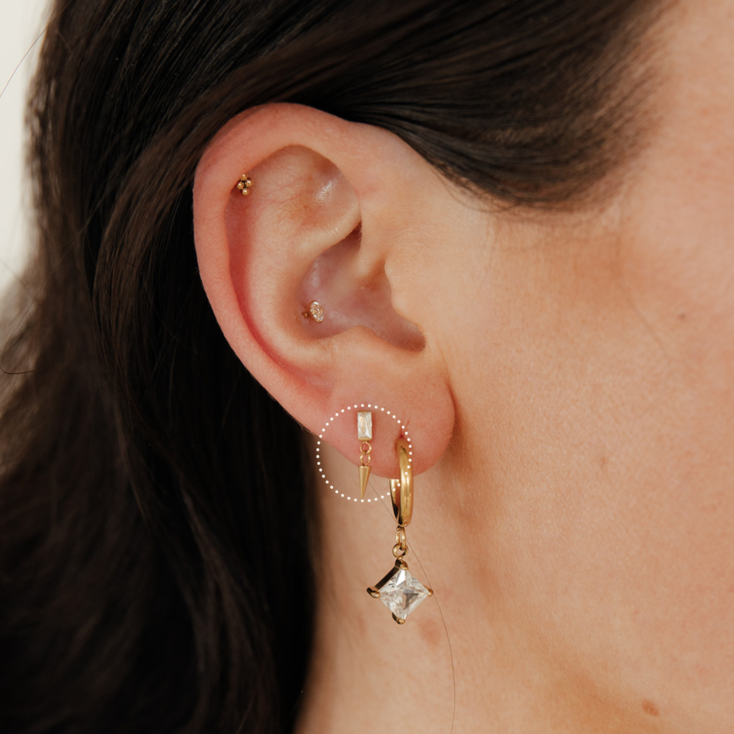 Baguette Dangle Flat Back Stud