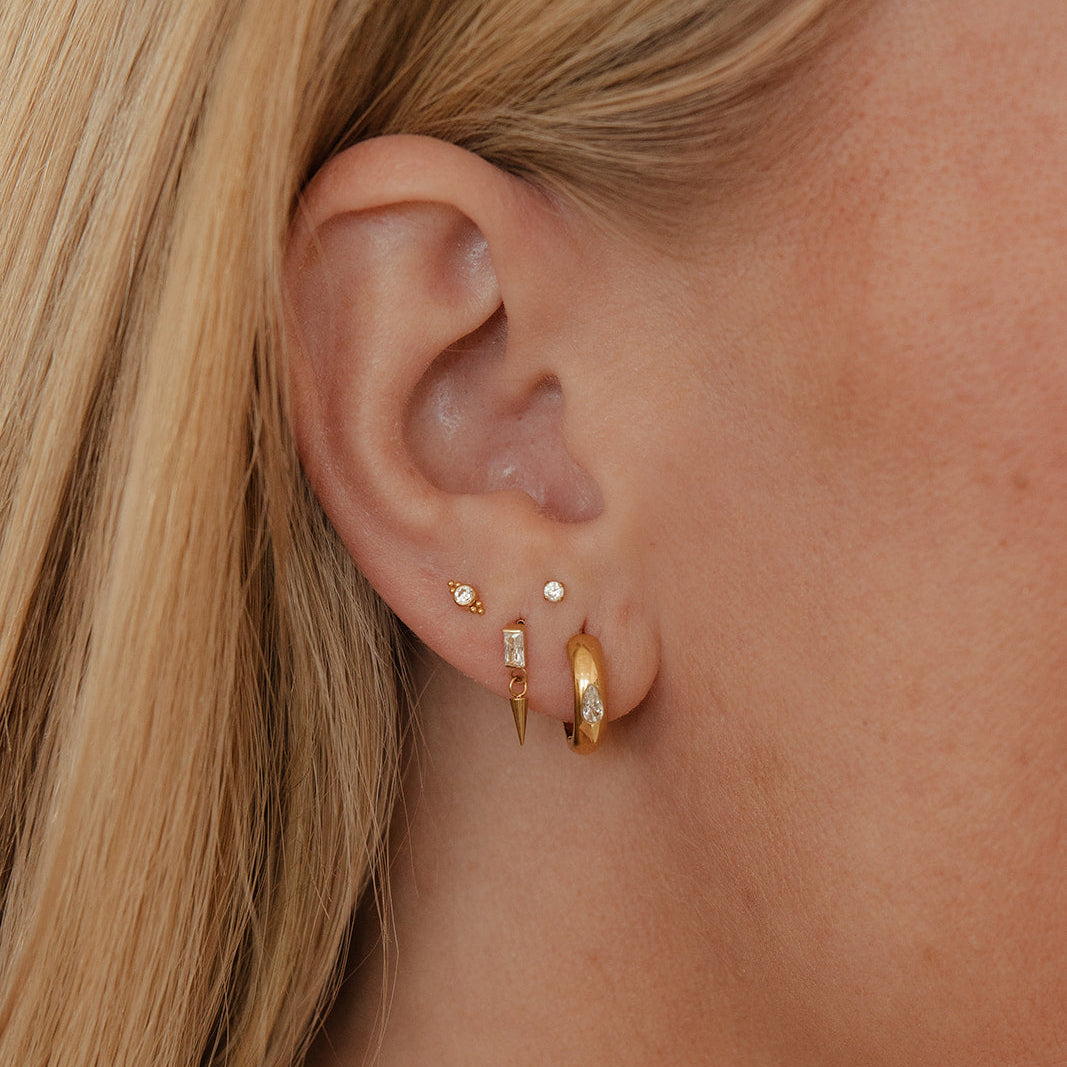 If you're used to only buying earrings in pairs, it could seem strange that these are sold as singles. Our studs are sold individually to allow mixing and matching in various piercings.