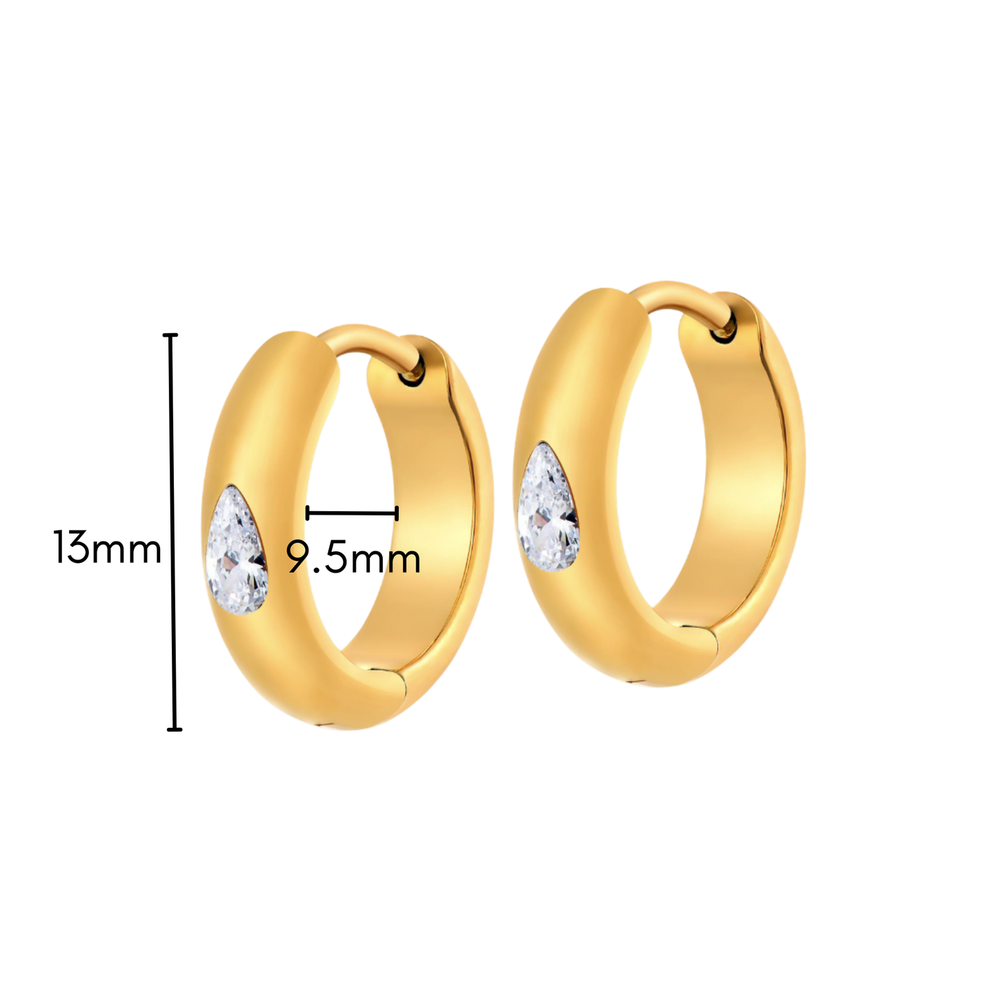 These polished gold hoops are finished with a single teardrop cut. Wear them solo for a sleek statement or layer them for the perfect ear stack.