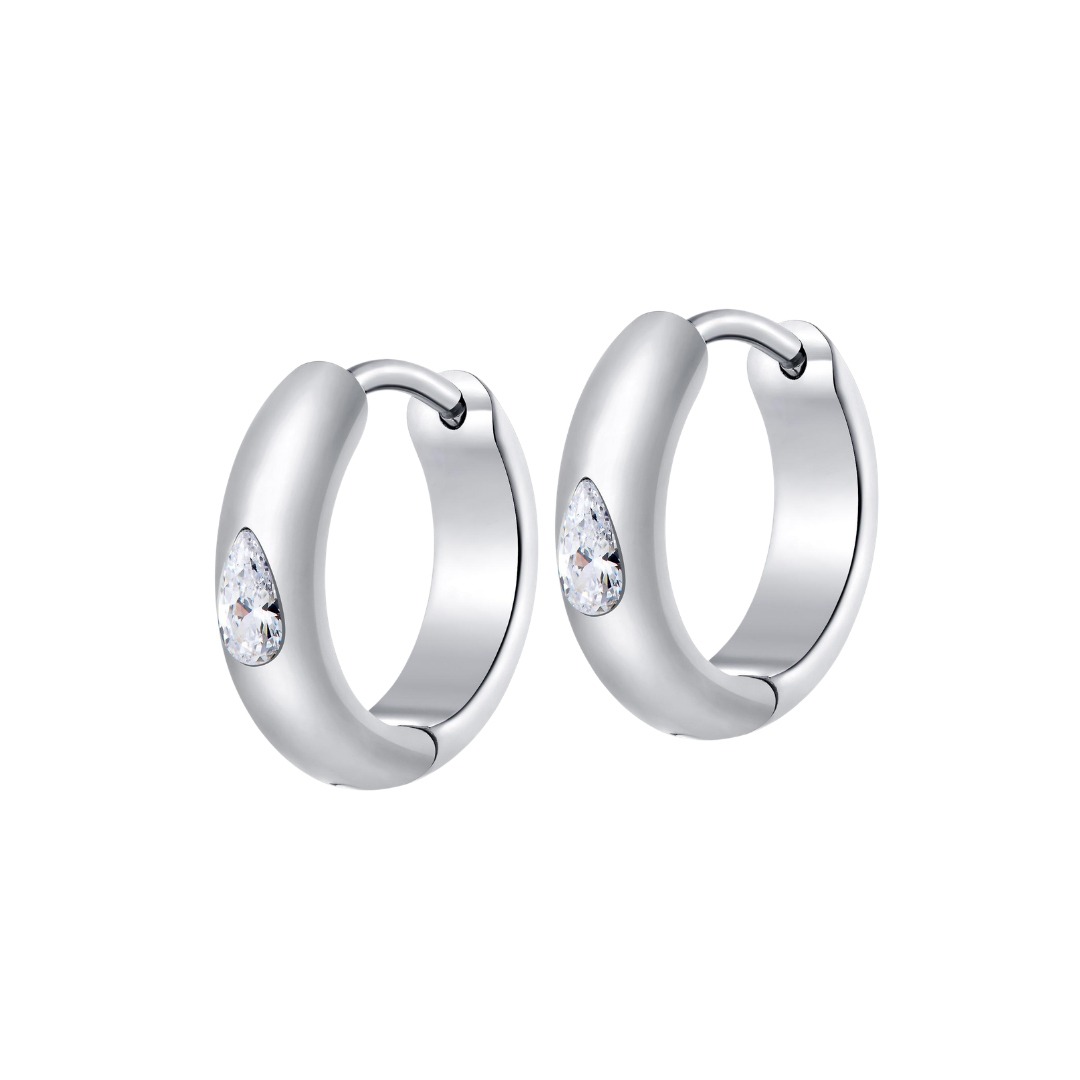 Teardrop Gem Hoops in Titanium
