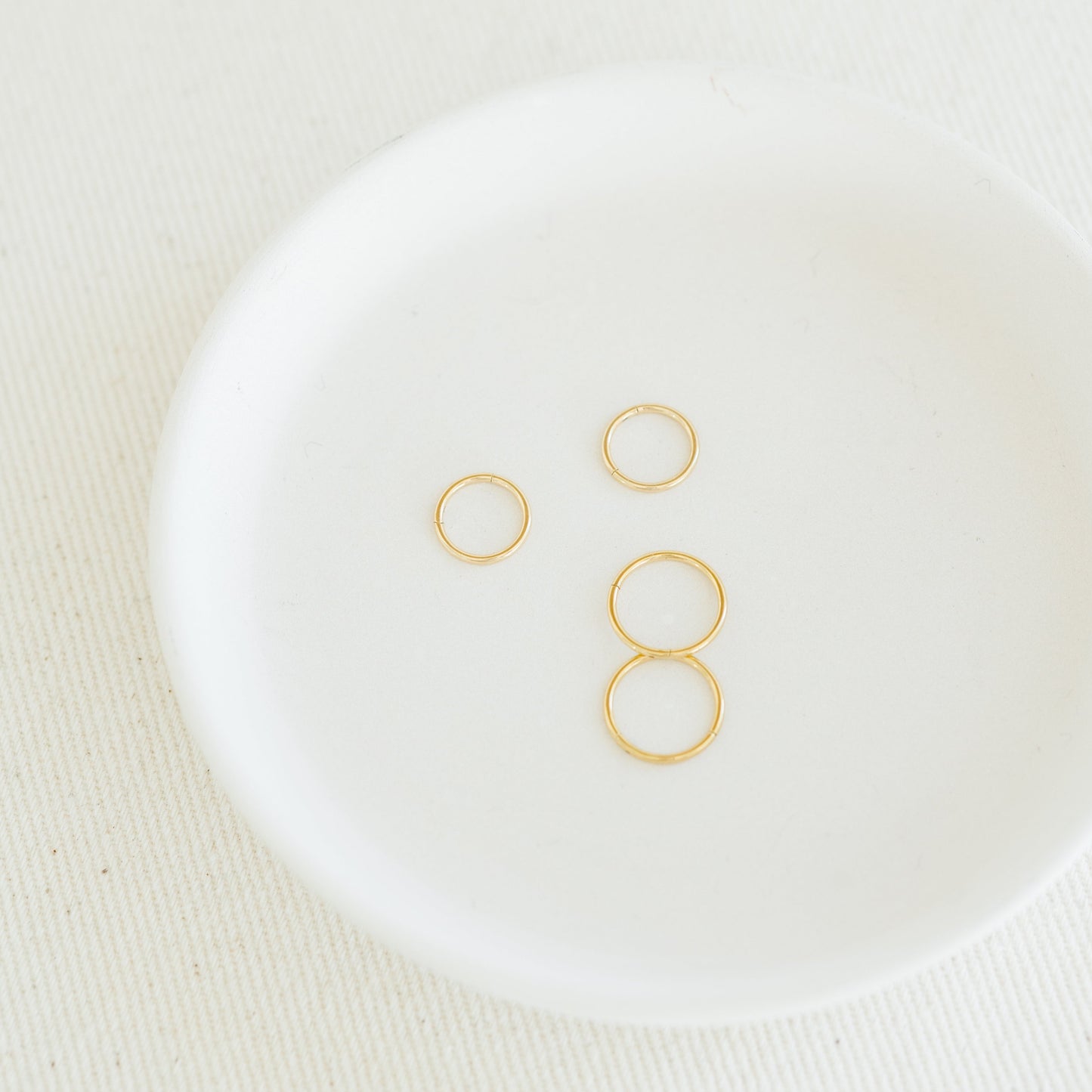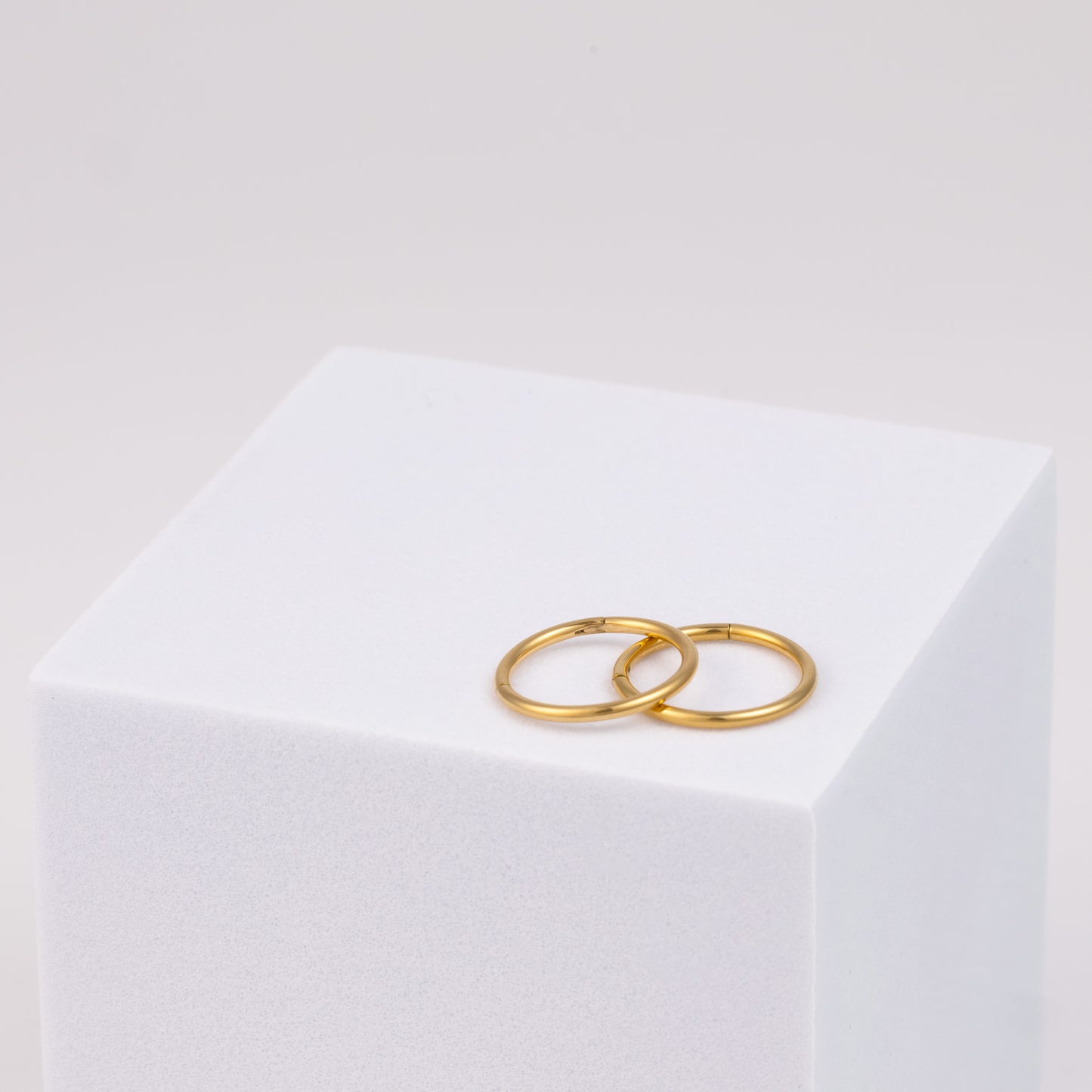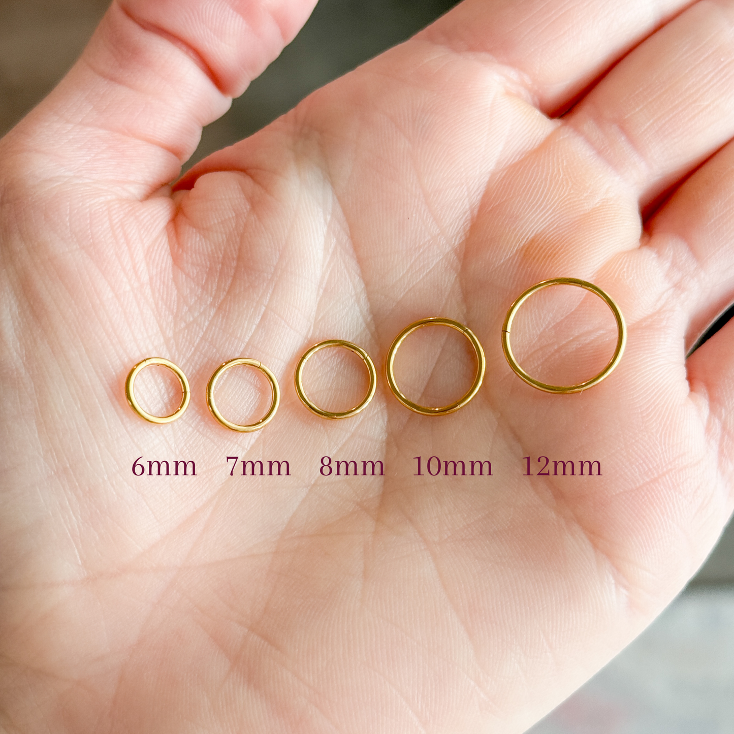 There's a reason these are best sellers! These hoops have a hinged clicker mechanism which makes them super easy to put in. They are smooth all the way around, so you can leave them in for weeks or months at a time.