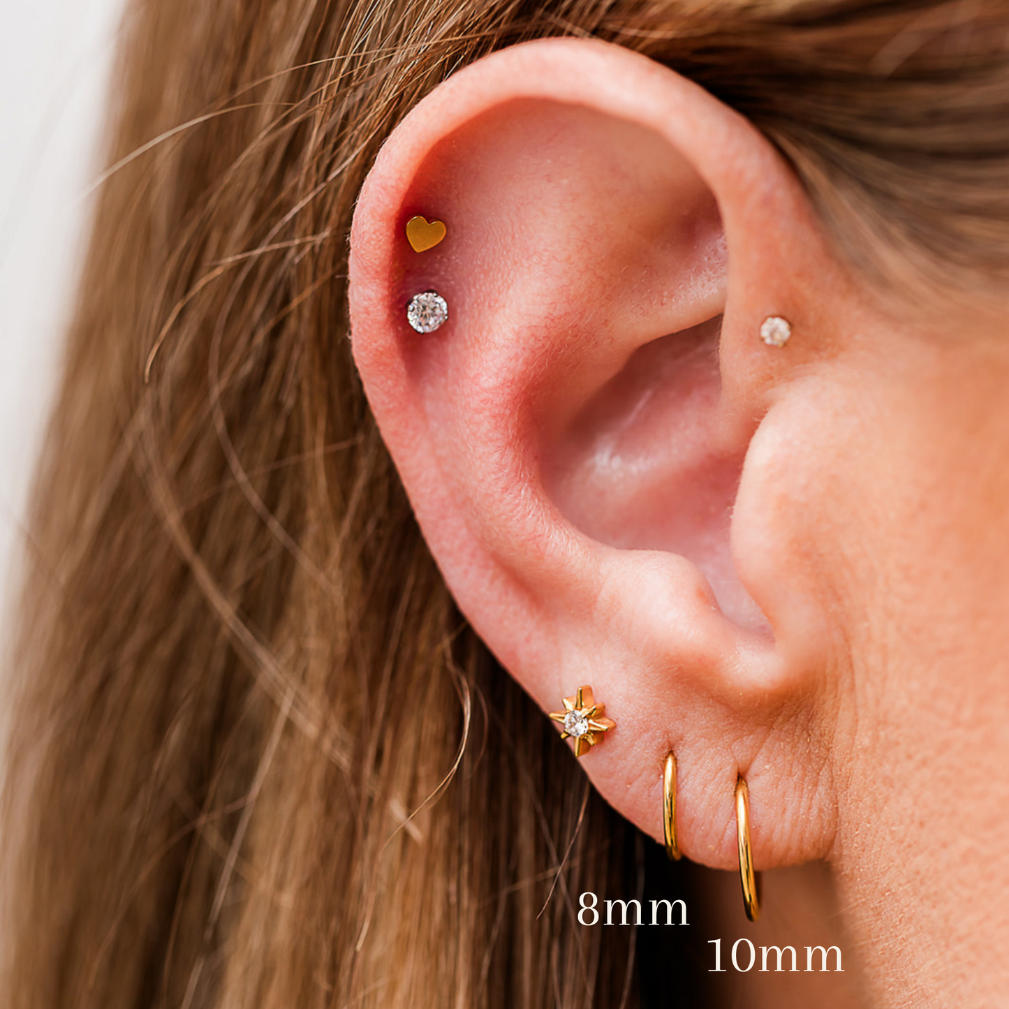 If you're used to only buying earrings in pairs, it could seem strange that these are sold as singles. Our studs are sold individually to allow mixing and matching in various piercings.